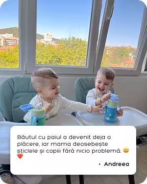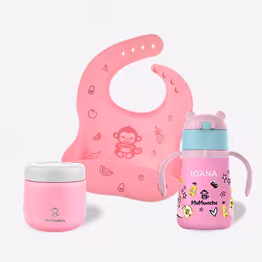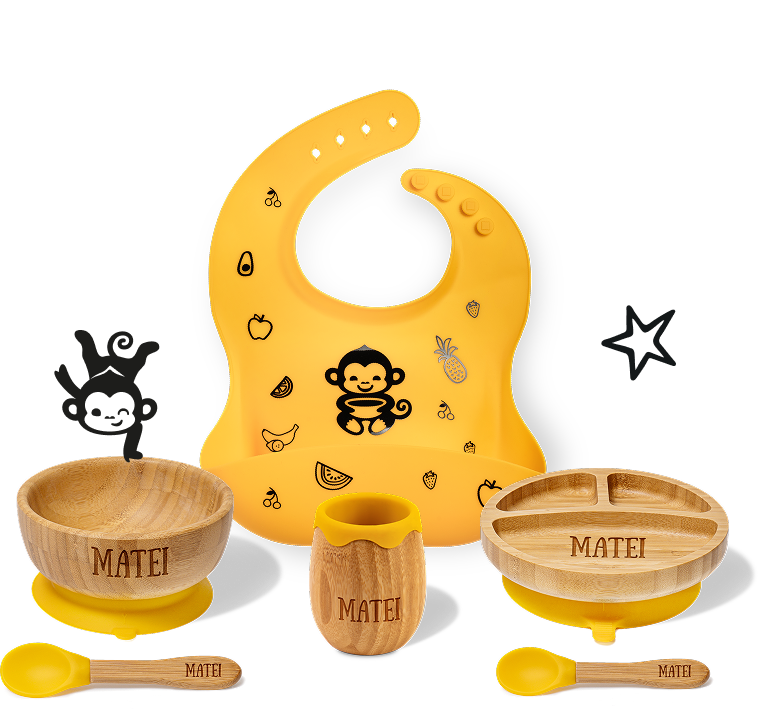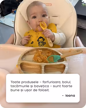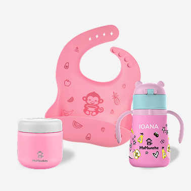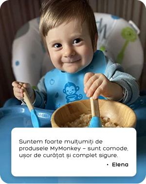 Puteți folosi produsele MyMonkey din perioada diversificării (luna 4-5). De asemenea, pot fi folosite până la vârsta de 3-4 ani, când copilul începe să mănânce singur.