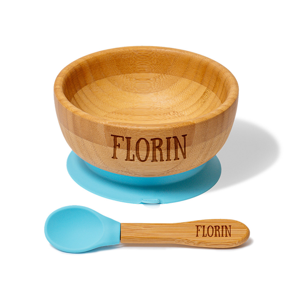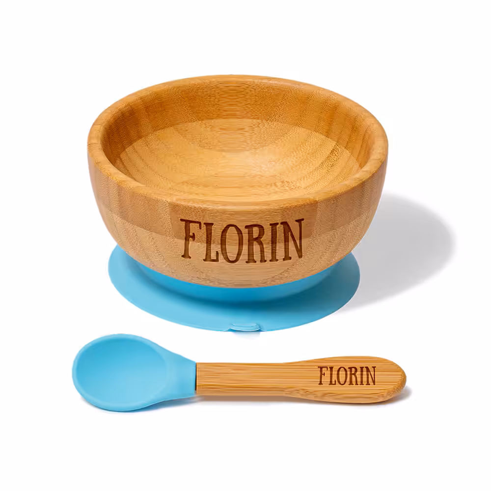 Lingurițele incluse în setul cu bol și farfurie pot fi gravate dacă selectați opțiunea la finalizarea comenzii (sub câmpul cu adresa de livrare).