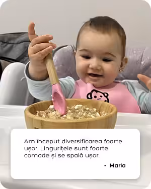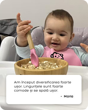 Lingurița este un mix între bambusul natural și siliconul moale, special conceput pentru gingiile sensibile ale bebelușilor. Vârful moale ajută la prevenirea accidentelor atunci când copilul mușcă instinctiv, chiar și înainte de apariția primilor dinți.