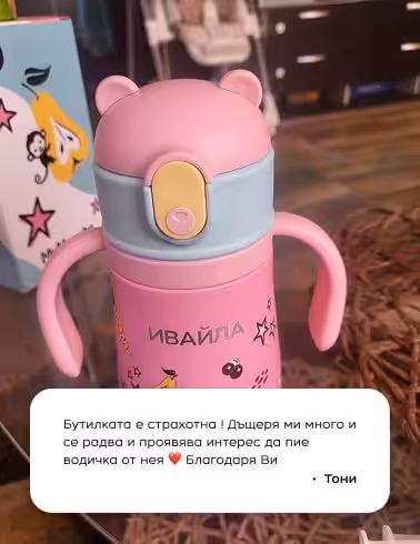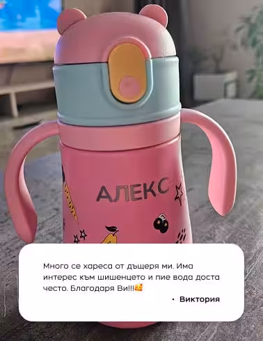 Персонализирана термо бутилка за вода за деца, с двойна стена и удобен дизайн за ежедневно ползване.