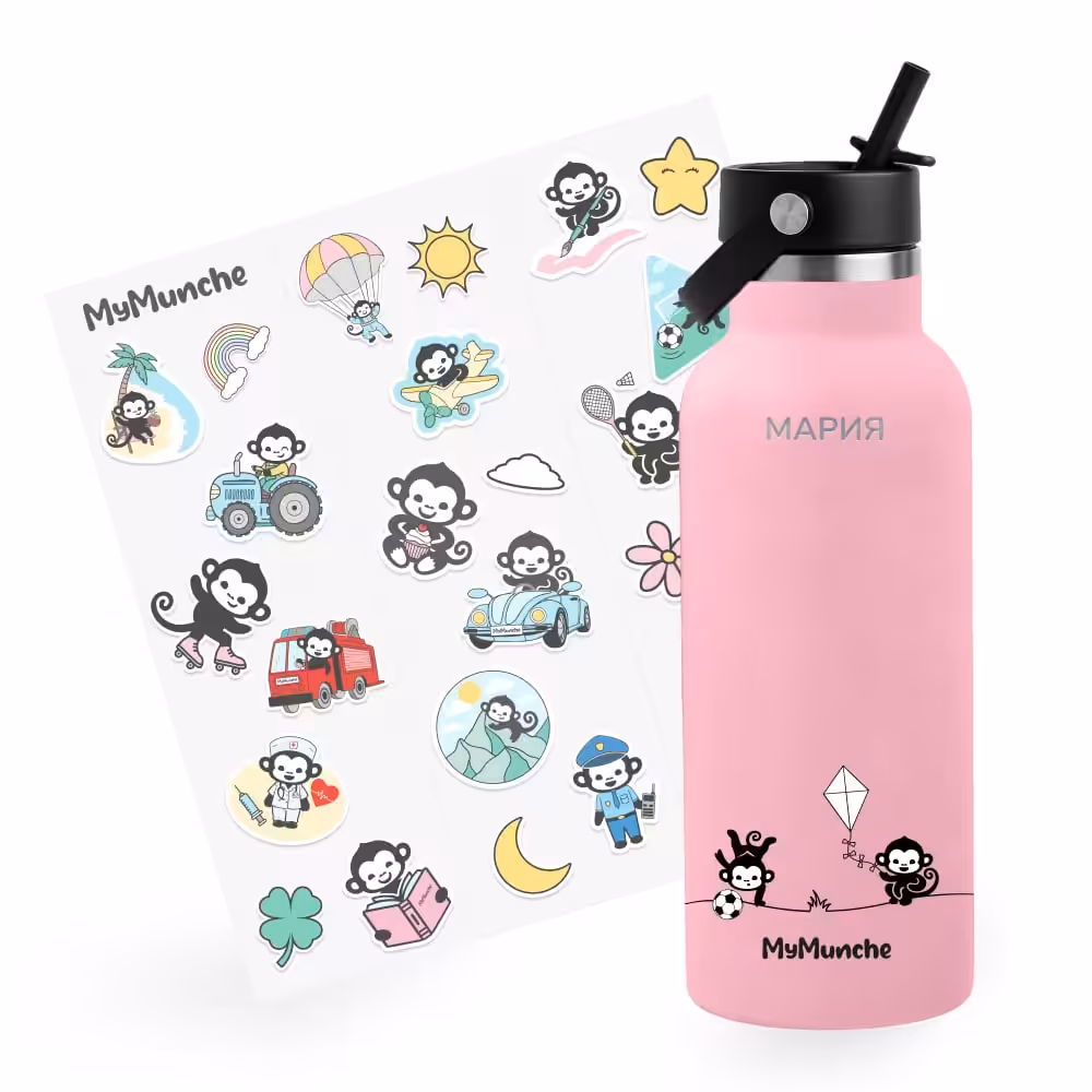 С вместимост 550 мл, двойна стена от неръждаема стомана и две сменящи се капачки, тя осигурява удобство и свежест без протичане. Силиконовият предпазител на дъното гарантира здравина при игра.